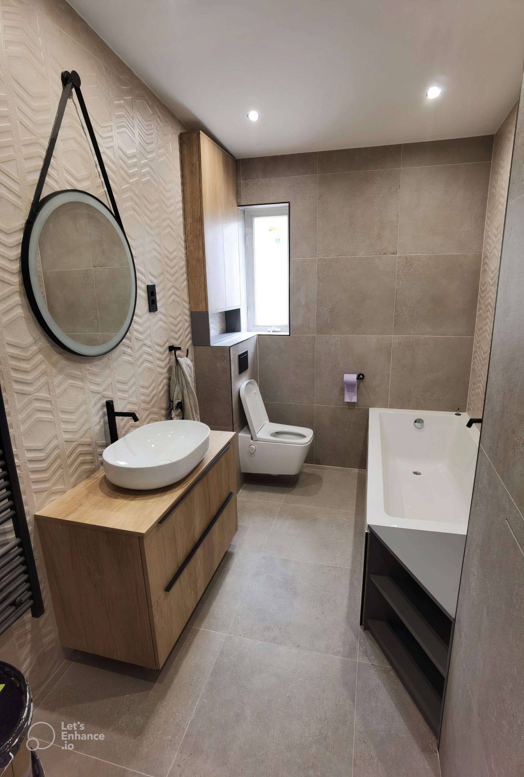 Ujednačen dizajn s jasnim linijama i prirodnim materijalima.